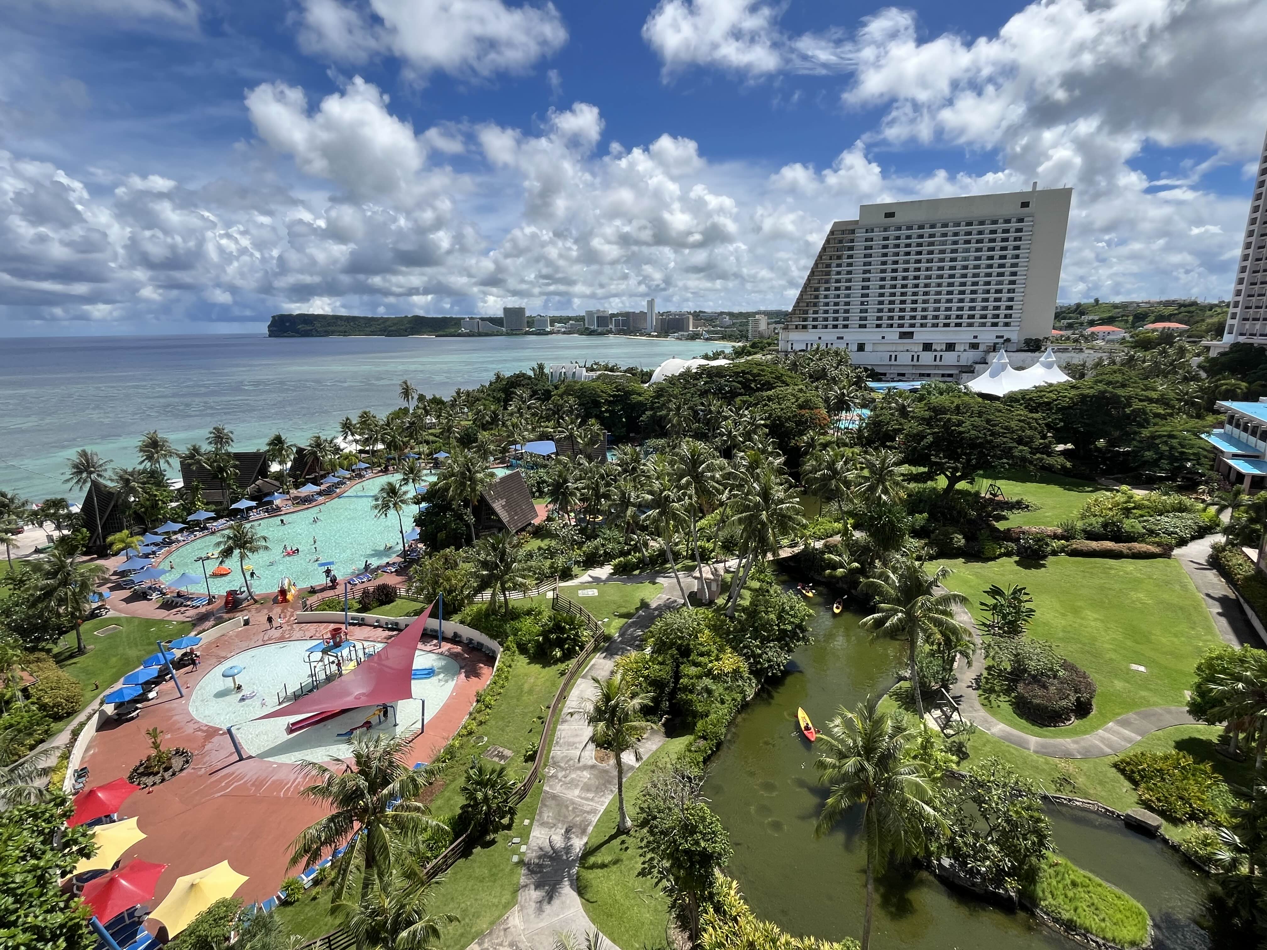 투몬(Tumon Bay) 중심에 위치해있어서 공항에서 5분거리로 무척 가깝습니다. 공항에서 이용 가능한 무료 셔틀도 있어요 :)