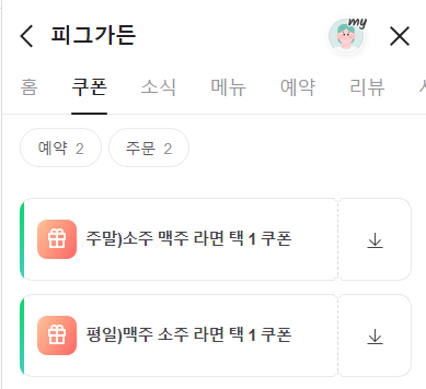 - 이벤트: 네이버에서 소주 / 맥주 / 라면 택 1 쿠폰 주고 있어요~!