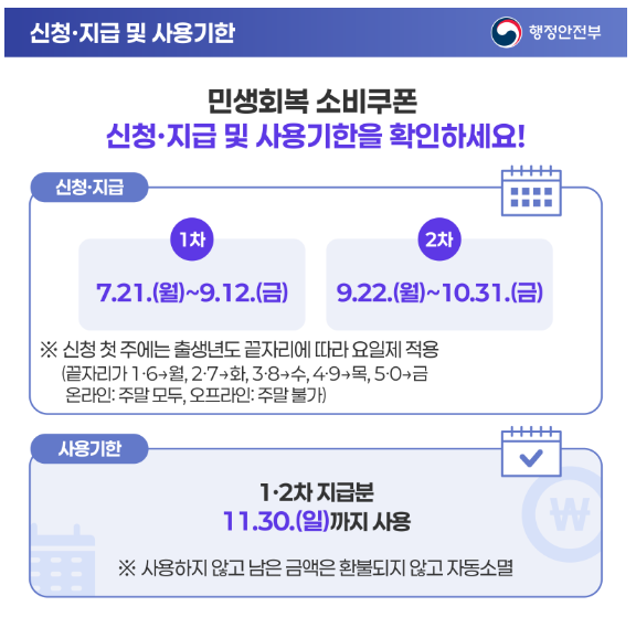 | 신청기간 | 7월 21일 (요일제) ~ 9월 12일 (1차), 9월 22일 ~ 10월 31일 (2차) |