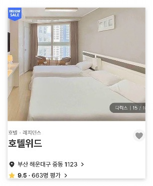 부산 해운대에 위치한 '호텔위드(Hotel With)'는 레지던스형 숙소입니다.