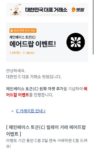 - 이벤트명 : 체인베이스 토큰(C) 릴레이 거래 에어드랍
