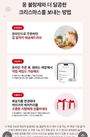 물론, 아직 먹어보지 않아서 맛으로 비교 할 수는 없지만 평소 몽블랑제의 단팥빵과 다른 빵들도 가성비있는 가격에 맛있게 즐겨먹었던터라 크리스마스 케이크도 믿고 도전해보았습니다 :)