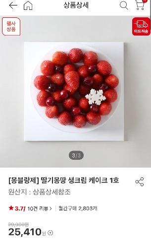 딸기몽땅 생크림 케이크 1호 기준 할인가 25,410원!