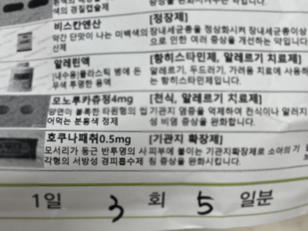 근데 저보다도 저희 아이들도 기침이 엄청 심한데요, 특히 둘째는 새벽에 자다가도 기침하느라 울면서 깨기도하고 너무 고생하고있어요. 그 모습을 보니 해줄 수 있는게 없어 안쓰럽더라구요. 날이 밝는대로 아이를 데리고 병원에가서 진료를 받고 약을 다시 받아왔어요. 이번에는 먹는약과 자기 전에 붙이는 기침 패치 약을 함께 받아왔어요!