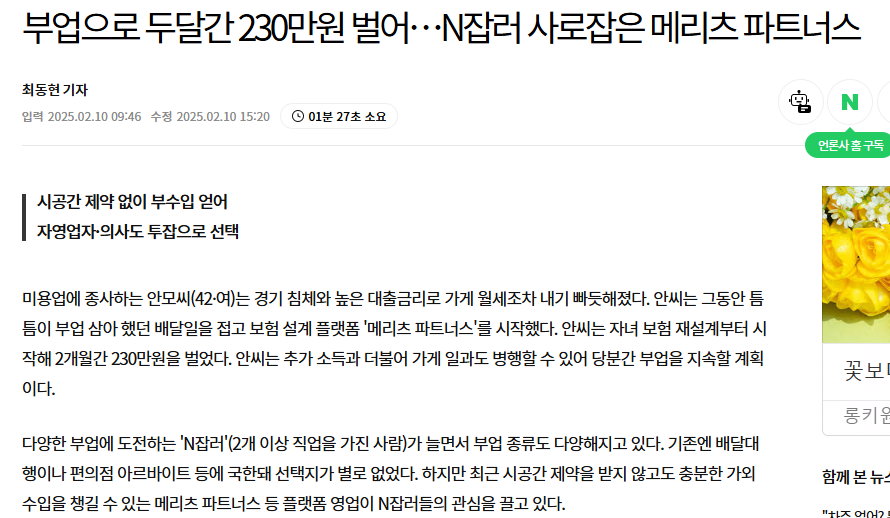 메리츠파트너스를 검색해 보면 부업, N잡러, 부수입 100만 원 등에 대한 후기만 넘쳐나지