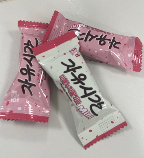 오늘 우연히 동료가 출출할 때 먹으라고 내어준 자유시건 마블누가 딸기맛을 먹고
