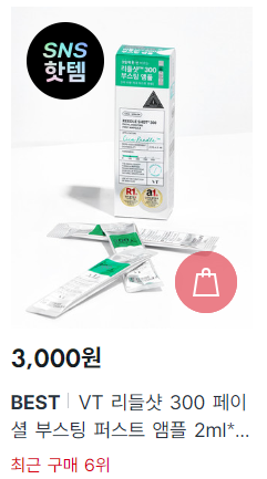 1. VT 리들샷 300 페이셜 부스팅 앰플 (₩3,000)