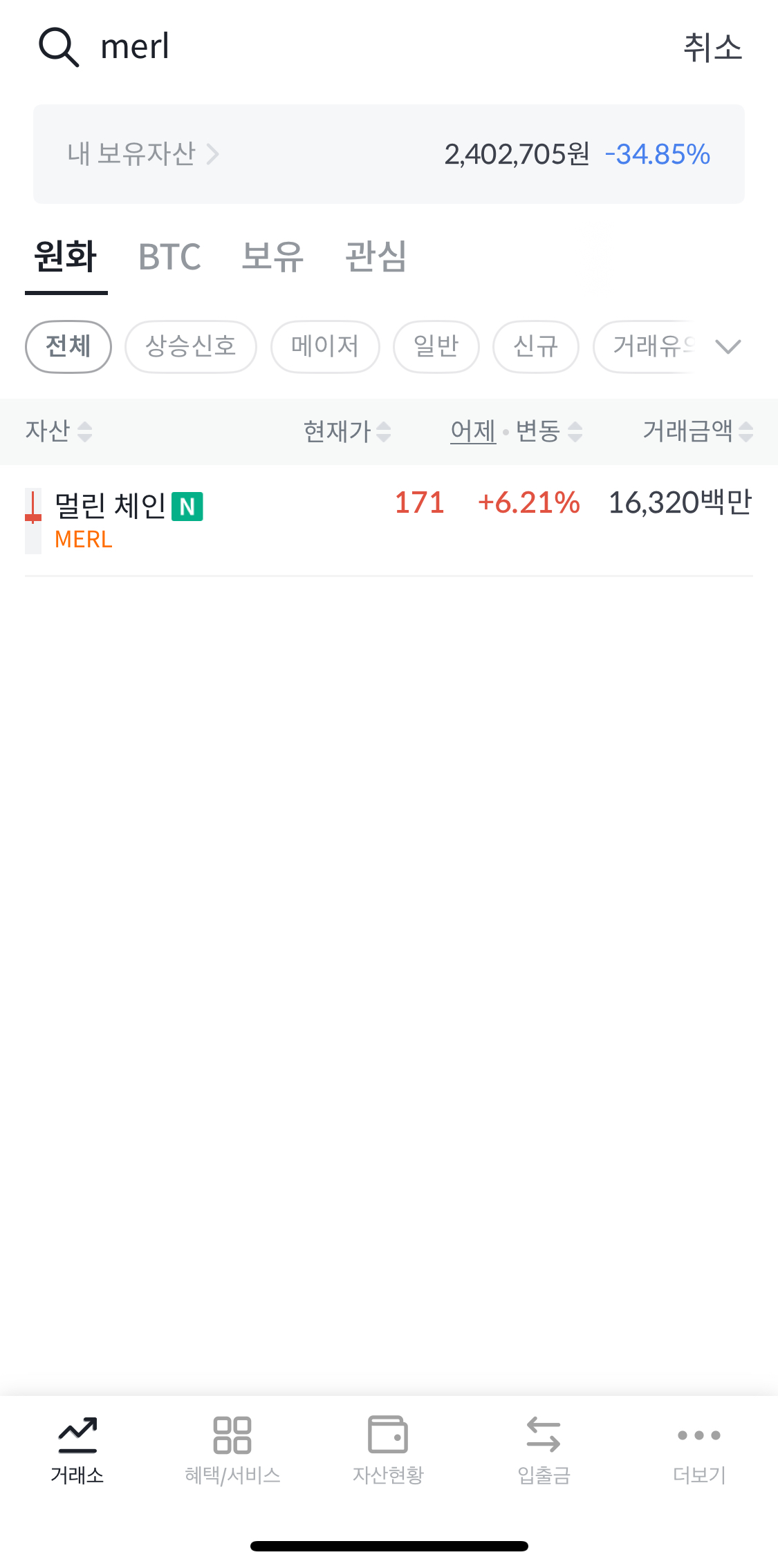 2. 거래소 상단 MERL 검색